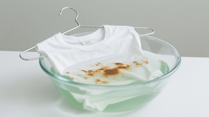 Oleskan penghilang noda pada noda → rendam pakaian secara menyeluruh dalam larutan bubuk pembersih.