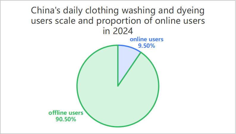 Diperkirakan skala keseluruhannya setiap hari clothing washing dan industri pewarnaan akan berjumlah sekitar 292 juta orang pada tahun 2024. Skala pengguna pencucian dan pewarnaan online adalah sekitar 2700 juta, terhitung 9,5%. Masih ada 90% pengguna yang belum mencoba laundry online. Baik dari sudut pandang konsumen atau pendapatan industri, pencucian dan pewarnaan pakaian hidup secara online sudah mulai terbentuk, dan masih terdapat ruang pertumbuhan yang sangat besar.